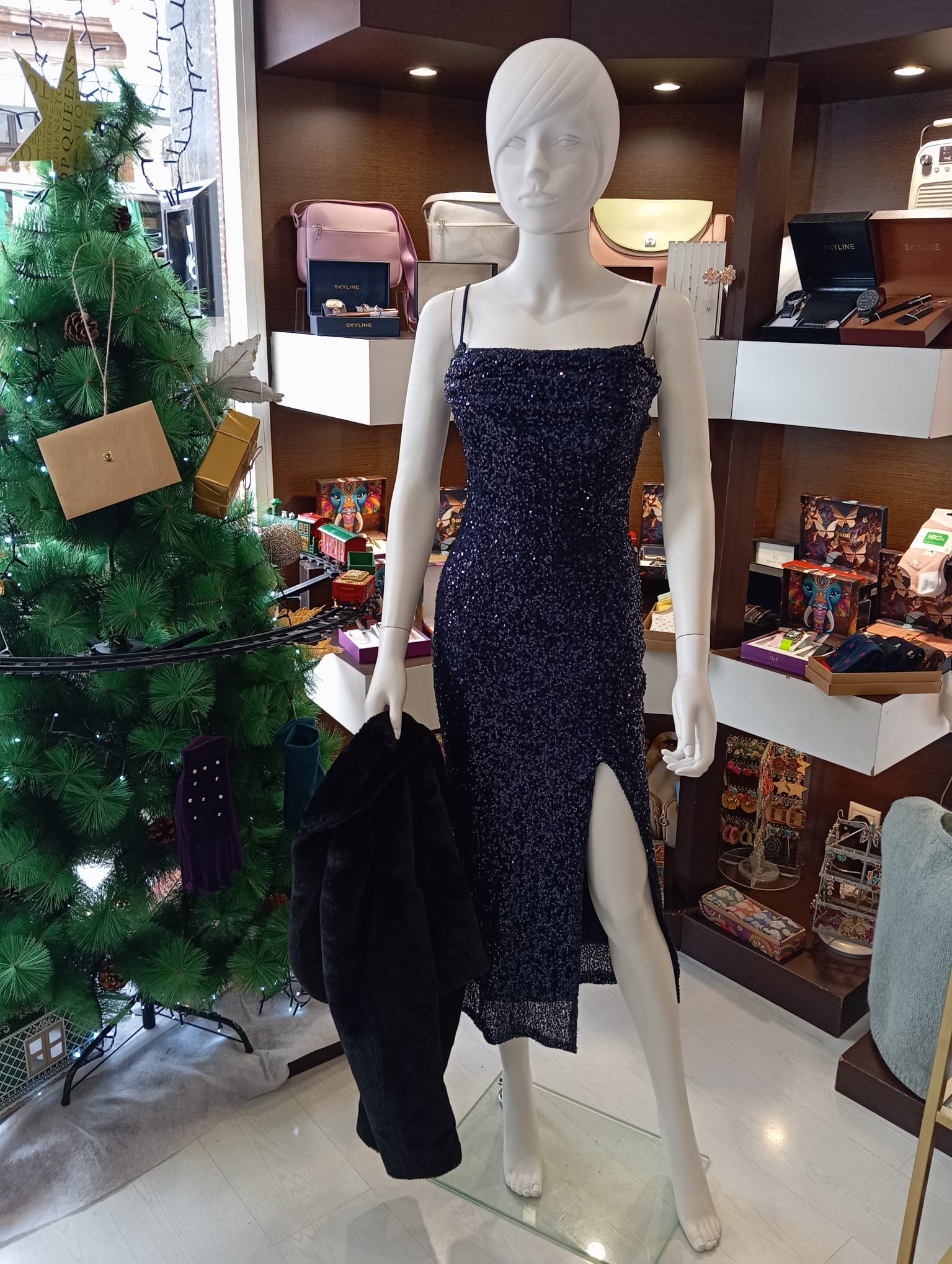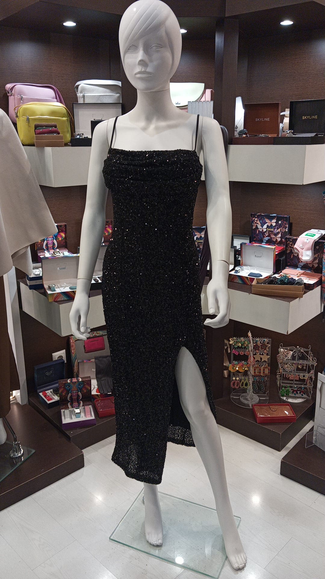 Vestido midi de lentejuelas y tirante fino. Es talla única válida desde talla 34 a talla 40.